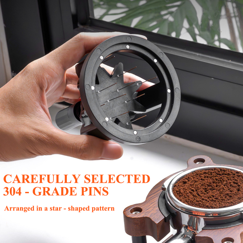 Even coffee powder distribution: The needle-like structure breaks clumps and returns the powder to a loose state, promoting uniform distribution for ideal extraction conditions.